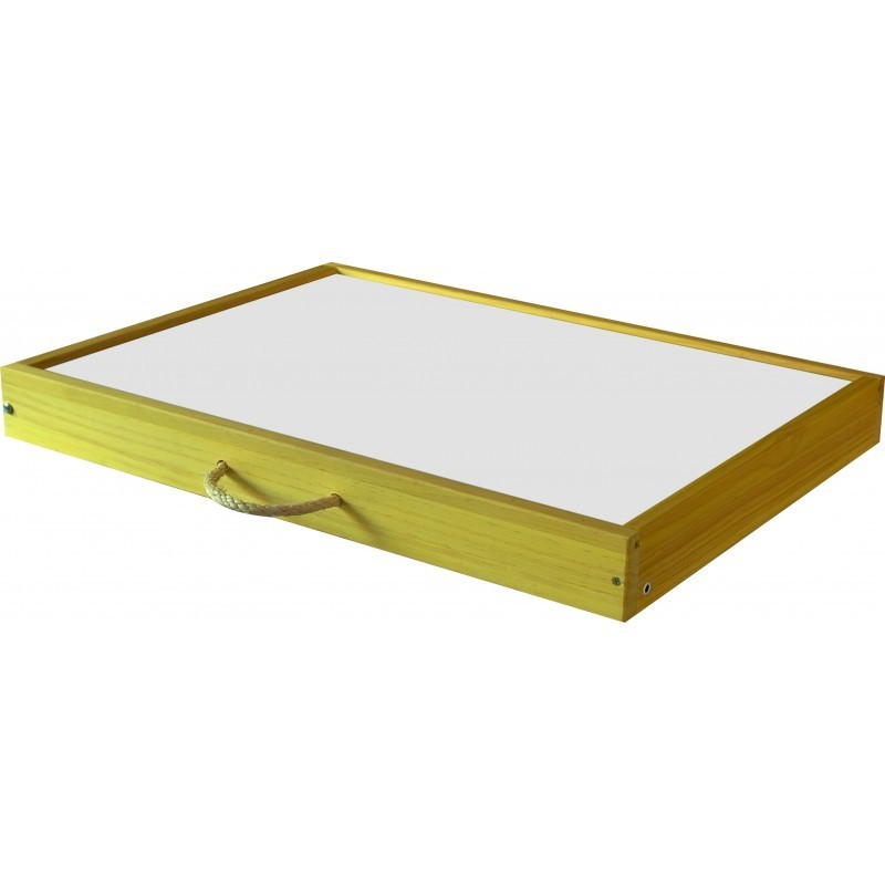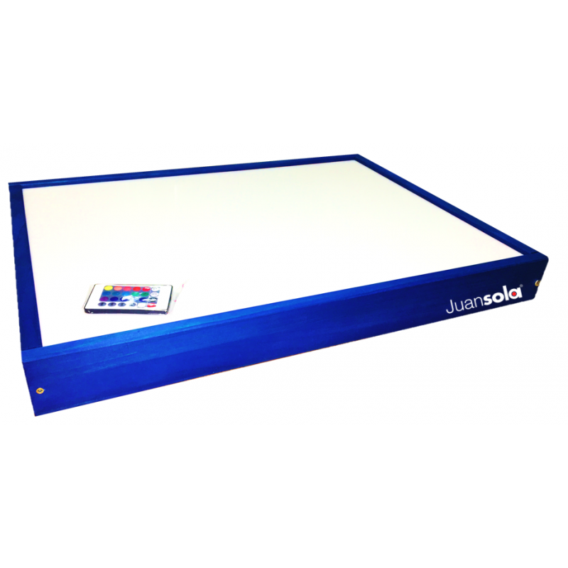 Panel de luz fabricado en madera natural pintada con tintes naturales no tóxicos y en 4 colores diferentes a elegir (azul, rojo, verde o amarillo) o sin tintar, en madera natural. Cajón sellado con barniz natural. Interior de cajon forrado en blanco para aportarle gran luminosidad. Producto de fabricación artesanal. Medidas: 64x48x7 cms. Luces de LED RGBW 5050 IP65 (color blanco más puro). Incluye Cajon de luz y adaptador de corriente de 12v. No necesita mando pues se controla directamente con el MÓVIL o una TABLET mediante wifi, a través de una aplicación que le aporta multitud de funciones y utilidades para educación: Trabaja con la paleta del dispositivo móvil por lo que aporta más de 16 millones de colores y permite regular su intensidad. Puede convertirse en un CAJÓN RÍTMICO, pues la mesa de enciende al ritmo de los archivos de música ejecutados desde el dispositivo. SENSOR DE VOZ que hace que la mesa se encienda cuando el niño habla, pudiendose regular la sensibilidad para trabajar problemas del habla o utilizar como semáforo de ruido en el aula. El hecho de trabajar a través de una APP la hace actualizable y preparada para incorporar cualquier mejora o funcionalidad que incorpore la app. Tapa de metacrilato OPAL de 5 mm super resistente y leds con protección al agua IP65. También incluye mando por si se prefiere trabajar sin wifi. Garantía de 1 año.