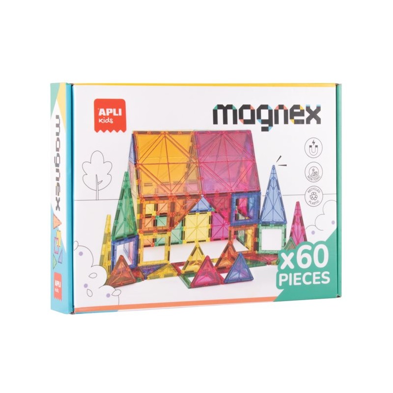 El set Magnex de 60 piezas invita a los pequeños constructores crear diseños más elaborados y originales. Gracias a la variedad de piezas incluidas, permite experimentar con estructuras tridimensionales y poner a prueba la imaginación y la planificación. Es una herramienta perfecta para fomentar el aprendizaje activo desde casa o en el aula, vinculada a metodologías educativas como el enfoque STEAM. El juego contiene 60 piezas magnéticas y unas instrucciones con ejemplos a seguir. Los niños podrán construir diferentes piezas 3D poniendo las piezas imantadas una encima de la otra. Este juego educativo refuerza habilidades clave como la resolución de problemas, el trabajo colaborativo, la percepción espacial y la organización de ideas visuales. Es ideal tanto para jugar en casa como para desarrollar proyectos educativos en grupo. Recomendado para niños a partir de 3 años.