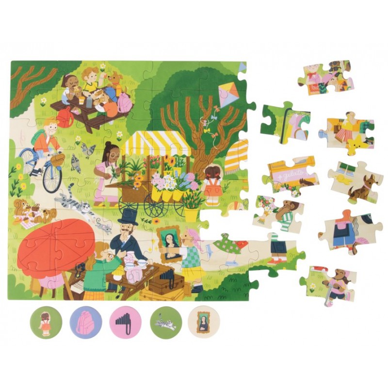 Puzle Find it first! con temática Mercado, un original puzle infantil de 200 piezas que combina la diversión de construir con el reto de observar y encontrar objetos. ¡Un doble juego perfecto para estimular el aprendizaje mientras los niños se divierten!...Después de montar el puzle, empieza la segunda parte del juego: encuentra los objetos escondidos que aparecen en las fichas redondas. Gana quien más objetos descubra. El puzle educativo incluye: 200 piezas de cartón resistente (tamaño 6 x 5 cm), 50 fichas redondas con objetos para buscar y 1 póster a tamaño real para ayudar en el montaje. El tamaño del puzle es 150 x 30 cm. Los puzles infantiles son mucho más que un juego: mejoran la concentración, la observación y la memoria; potencian la resolución de problemas y la percepción espacial; desarrollan la psicomotricidad fina y la coordinación mano-ojo; fomentan las habilidades matemáticas y el reconocimiento de formas; y refuerzan la autoestima y la motivación al completar el reto. Recomendado para niños y niñas a partir de 6 años, el Puzle Find it First! Mercado es un excelente recurso para el desarrollo cognitivo y emocional. Ideal para regalar o incorporar actividades educativas en casa o en el aula.