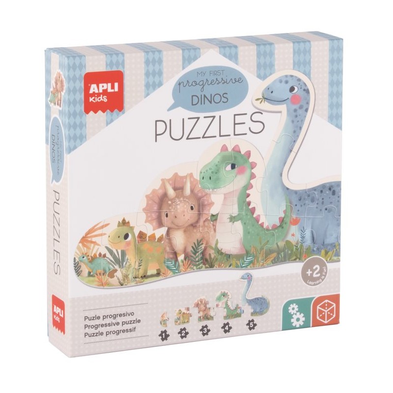 Puzle My First Dinos con temática dinosaurios, un puzle progresivo diseñado especialmente para niños a partir de 2 años. Ideal como primer puzle infantil, este juego educativo ayuda a los más pequeños a desarrollar habilidades clave mientras se divierten. Incluye 15 piezas grandes y resistentes para construir 5 puzles progresivos que, al completarse, forman un puzle final de 56,5 x 32,5 cm. Los niños podrán montar simpáticos dinosaurios. Gracias a su diseño ergonómico y acabados seguros, este puzle es perfecto para que los más pequeños lo manipulen de forma fácil y segura. Beneficios del Puzle My First Dinos: favorece el desarrollo de la psicomotricidad fina; estimula la concentración y la coordinación mano-ojo; introduce el juego progresivo de manera didáctica; familiariza al niño con los animales de la granja; fomenta el aprendizaje temprano a través del juego. Un juego educativo ideal para acompañar el crecimiento y desarrollo infantil. Perfecto como primer puzle o regalo para niños pequeños. Recomendado a partir de 2 años.