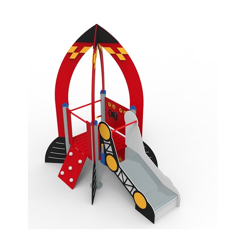 Juego infantil modular TORRE COHETE con tematización de AERONÁUTICA. Formado por un tejado y juegos como un panel lúdico y un tobogán, demás de una escalera vertical y una rampa de escalada como accesos. Los usuarios disfrutarán jugando, escalando, saltando, deslizándose y realizando multitud de actividades que fomentarán el desarrollo sensorial psicomotriz así como habilidades sociales. Consultar condiciones transporte y montaje.
