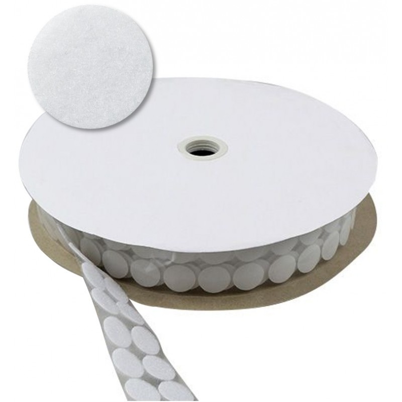 Rollo de 10 metros formato ahorro de discos de velcro redondos de 19 mm de diámetro blancos con trasera adhesiva para una rápida y fácil colocación. Cada rollo contiene aproximadamente 1000 discos. Se venden ambas parte del cierre por separado para aprovechar al máximo su utilización ya que suele consumirse más una parte que otra en el ámbito escolar, permitiendo economizar al máximo su utilización. Este rollo contiene la parte de la esponja (hembra). Necesita la parte de gancho ref. 92227. Comprando ambos rollos supone la forma más económica de utilizar velcros para manualidades en las aulas.