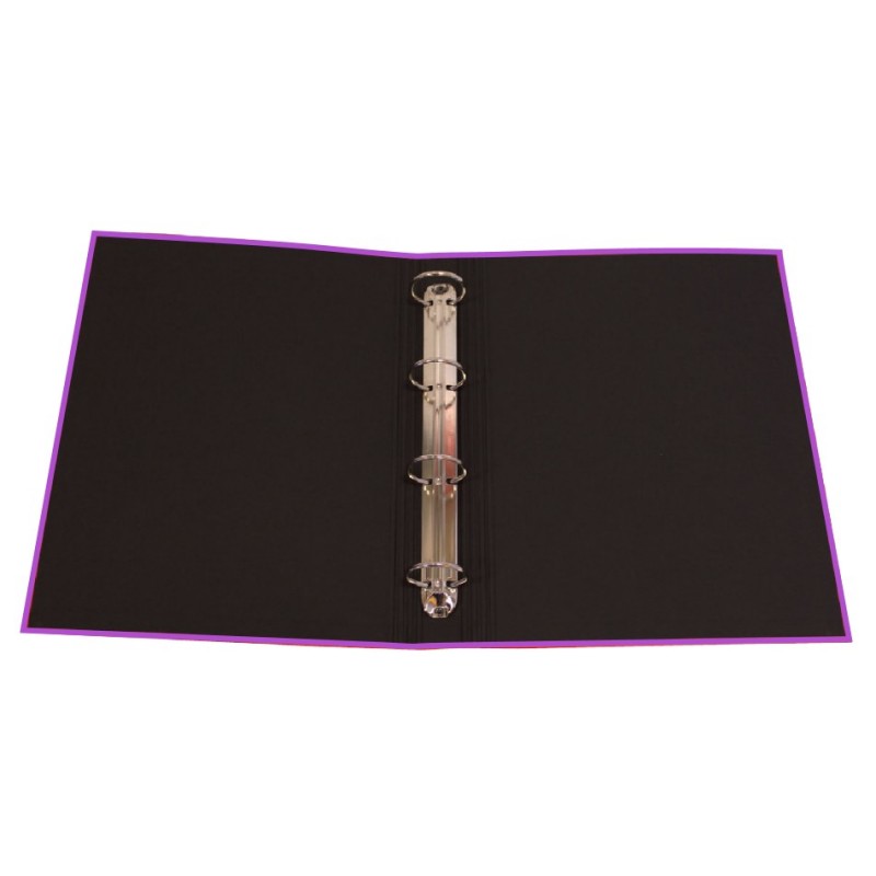 Carpetas de cartón forrado mate color morado tamaño Folio ideal para uso escolar por la posibilidad de elegir colores. 4 anillas redondas de 25 mm. Lomo de 35 mm.