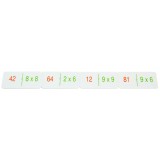 Dominós para trabajar operaciones matemáticas compuesto de 28 fichas de plástico inyectado de 8 x 4 cms, lavables, de 2mm de grueso, presentados en estuche de cartón A partir de 5 años